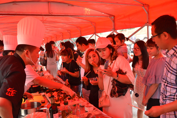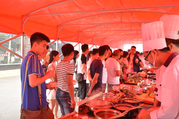 如果用一個(gè)字來形容今天的美食街,那就是“火”。如果是三個(gè)字那就是“非;”。無論是中烹,西點(diǎn),還是西餐展柜前都擠滿了人。那場(chǎng)面真是贊美聲喧天,美味齊享,招牌菜展,人山人海啊。