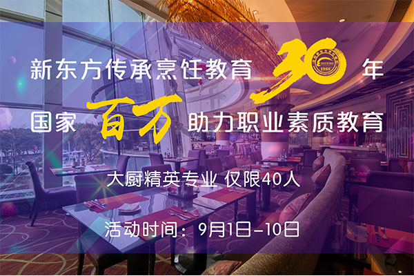 在7月與8月連續(xù)兩個(gè)月,沈陽(yáng)新東方技工學(xué)校兩年制大廚精英專業(yè)與精品西點(diǎn)專業(yè)報(bào)名現(xiàn)場(chǎng)火爆。兩大專業(yè)現(xiàn)在已經(jīng)全部滿班。為滿足家長(zhǎng)與學(xué)生要求,經(jīng)過(guò)校方?jīng)Q定,從9月1日—9月10日兩大專業(yè)分別特招一個(gè)班級(jí)。凡在此期間報(bào)名學(xué)習(xí)就均可享受政府補(bǔ)助1萬(wàn)元。大專學(xué)籍此為最后一次補(bǔ)錄,過(guò)此再無(wú)機(jī)會(huì)!