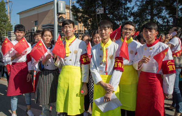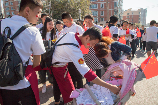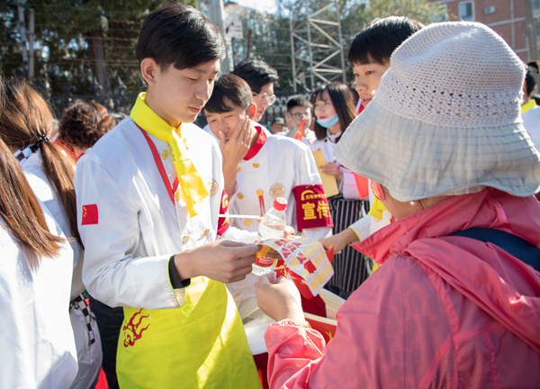 我校學(xué)生為愛國人士分發(fā)主題粘貼