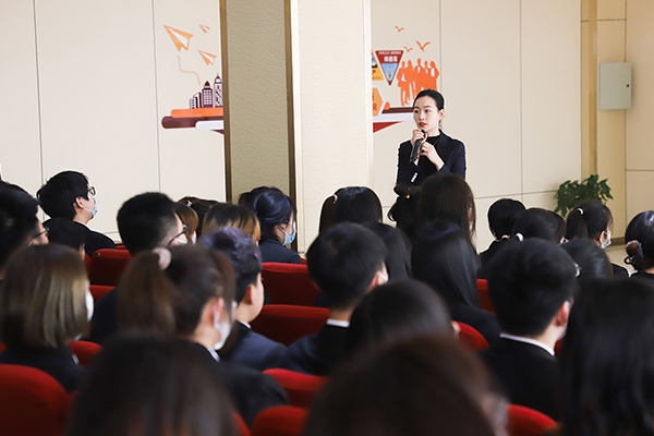 招聘會是一場雙向選擇,因此企業(yè)負責人,首先向同學們以PPT的形式,展示了企業(yè)歷史,品牌故事,公司架構,人員組成,薪酬福利等大家比較關心的問題。同學們聽得都很認真,畢竟學所有成就是為了學有所為,進入一個待遇良好,有發(fā)展前景的企業(yè),是每位即將畢業(yè)的學子的理想。