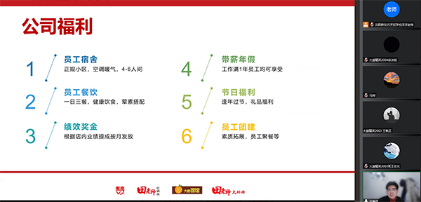 當(dāng)企業(yè)負(fù)責(zé)人將田老師的背景與企業(yè)文化為同學(xué)們予以說明后,同學(xué)們對入職這家企業(yè)充滿期待,緊接著,企業(yè)負(fù)責(zé)人開始講解起員工的成長之路。在餐飲管理方面,在各崗位的任職時間、需要學(xué)習(xí)的內(nèi)容、晉升要求她都詳細(xì)進行了解讀;在后廚員工晉升方面,她又更有針對性地談到了每一步的標(biāo)準(zhǔn),讓同學(xué)們對將來的晉升之路更加清晰。同時她還特意提到了莆田的福利待遇,比如社保問題、食宿問題、年假休息等其它同學(xué)們十分感興趣的問題,并就這些和同學(xué)們進行了互動。